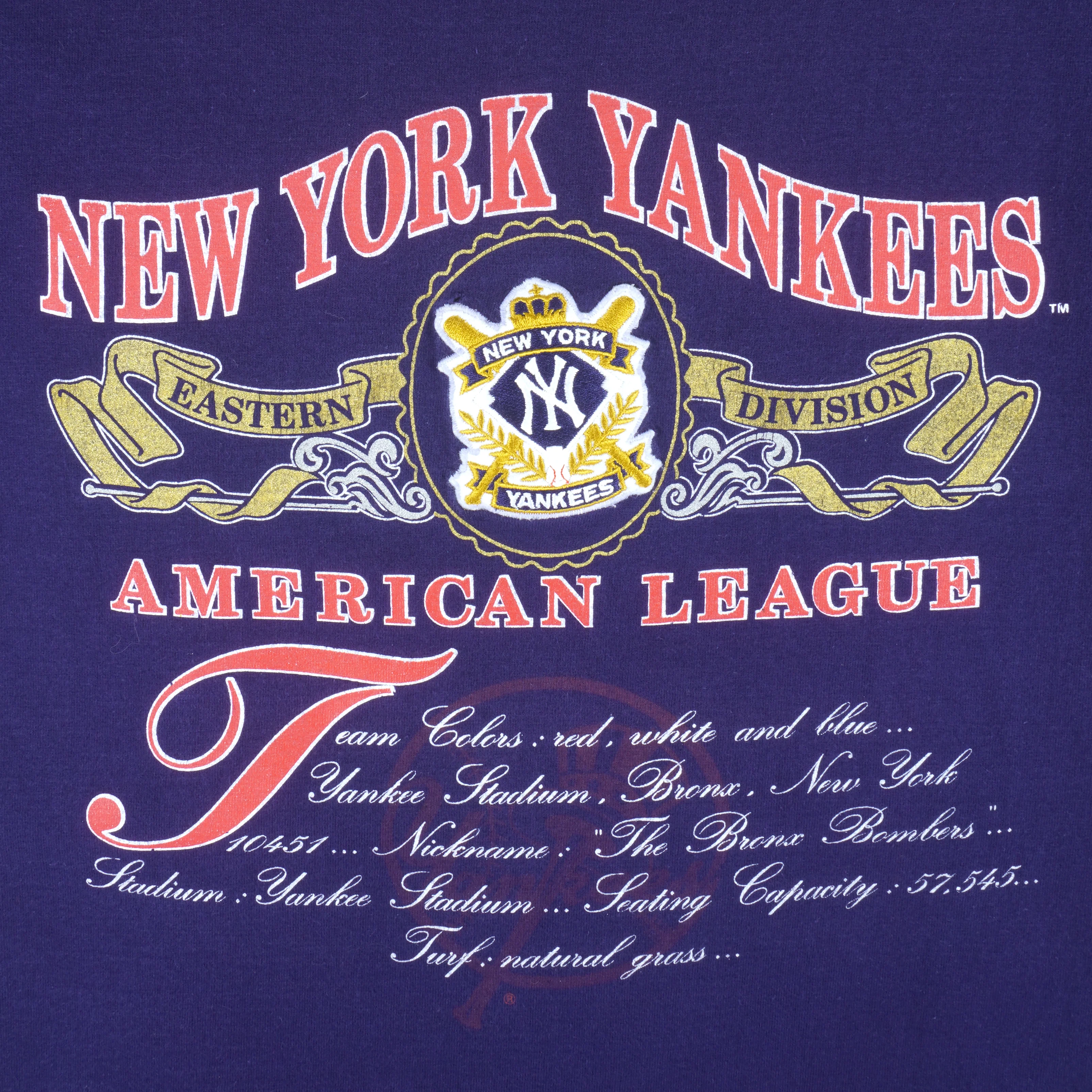 1990s Vintage MLB New York Yankees Single Stitch T-Shirt by Nutmeg. Blue in color, tag is large but fits like medium tall size and is in excellent condition.