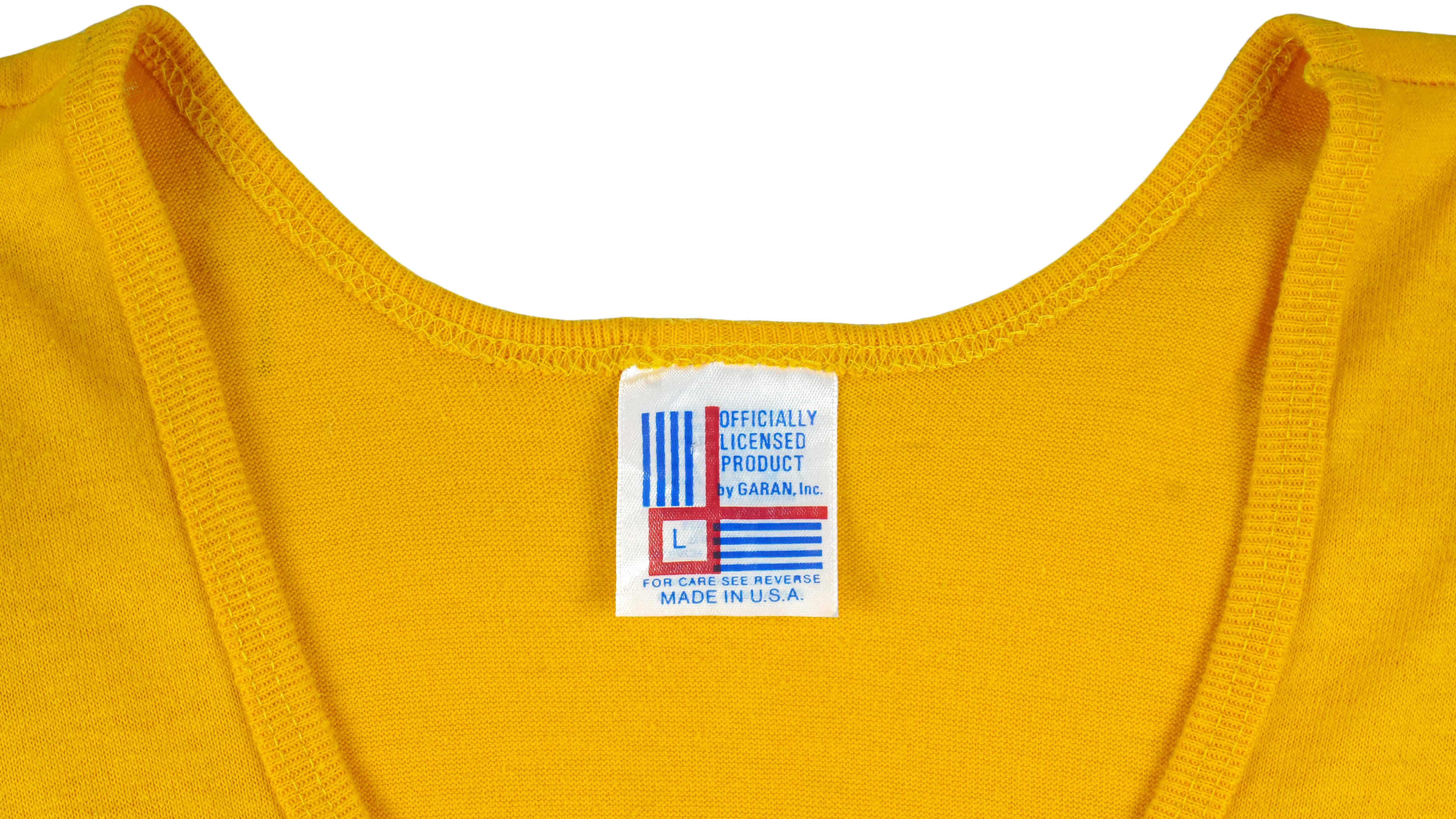 1990s Vintage NBA Atlanta Hawks Sleeveless T-Shirt. Red and yellow in color, spell-out and logo on the front, tag is large but fits like a medium size with signs of wear, shows aging on screen-print and is otherwise in very good condition.