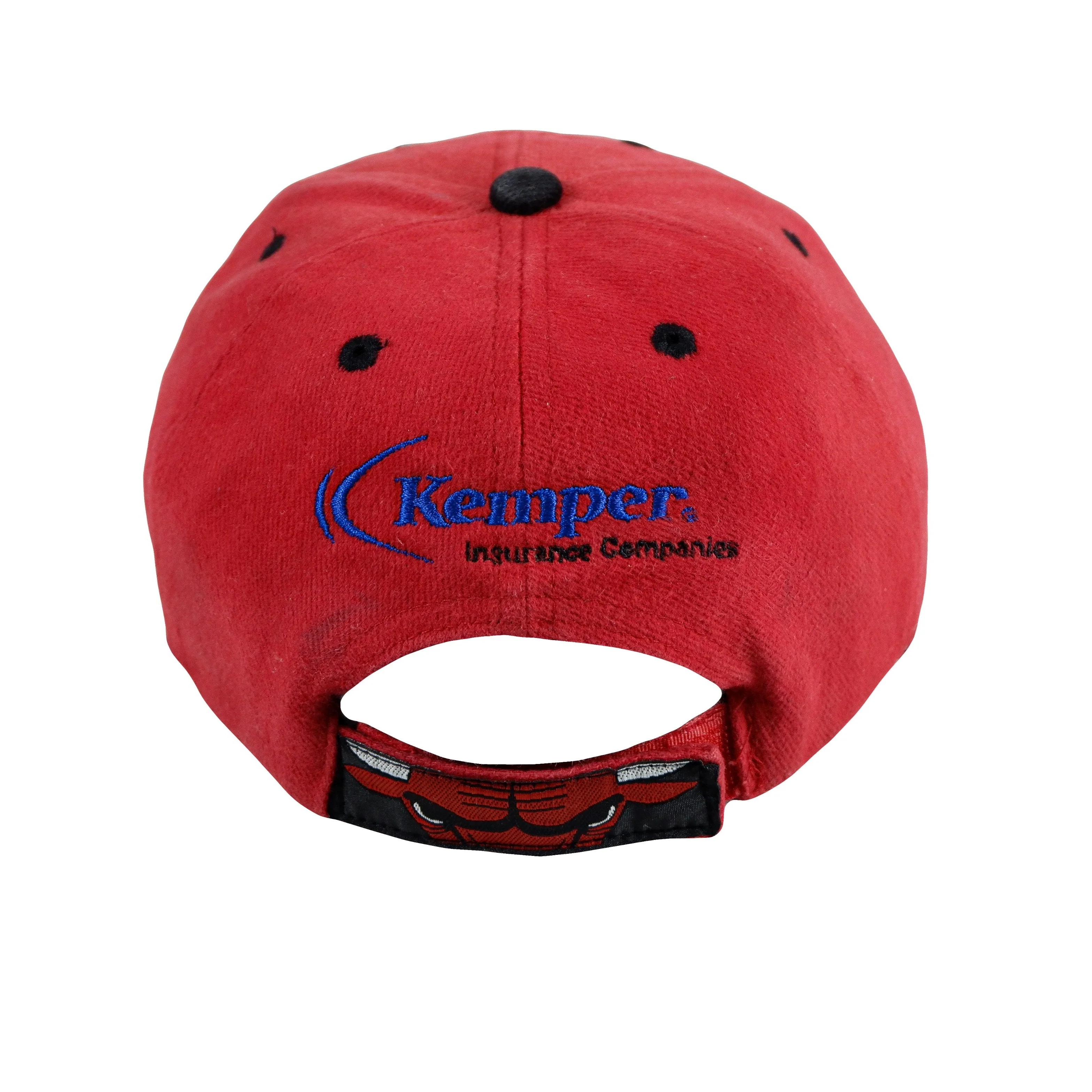 1990s Vintage NBA Chicago Bulls Strapback Hat with big spell-out and logo by Kick 10 Pro Gear. Red and black in color, adjustable size and is in excellent condition.