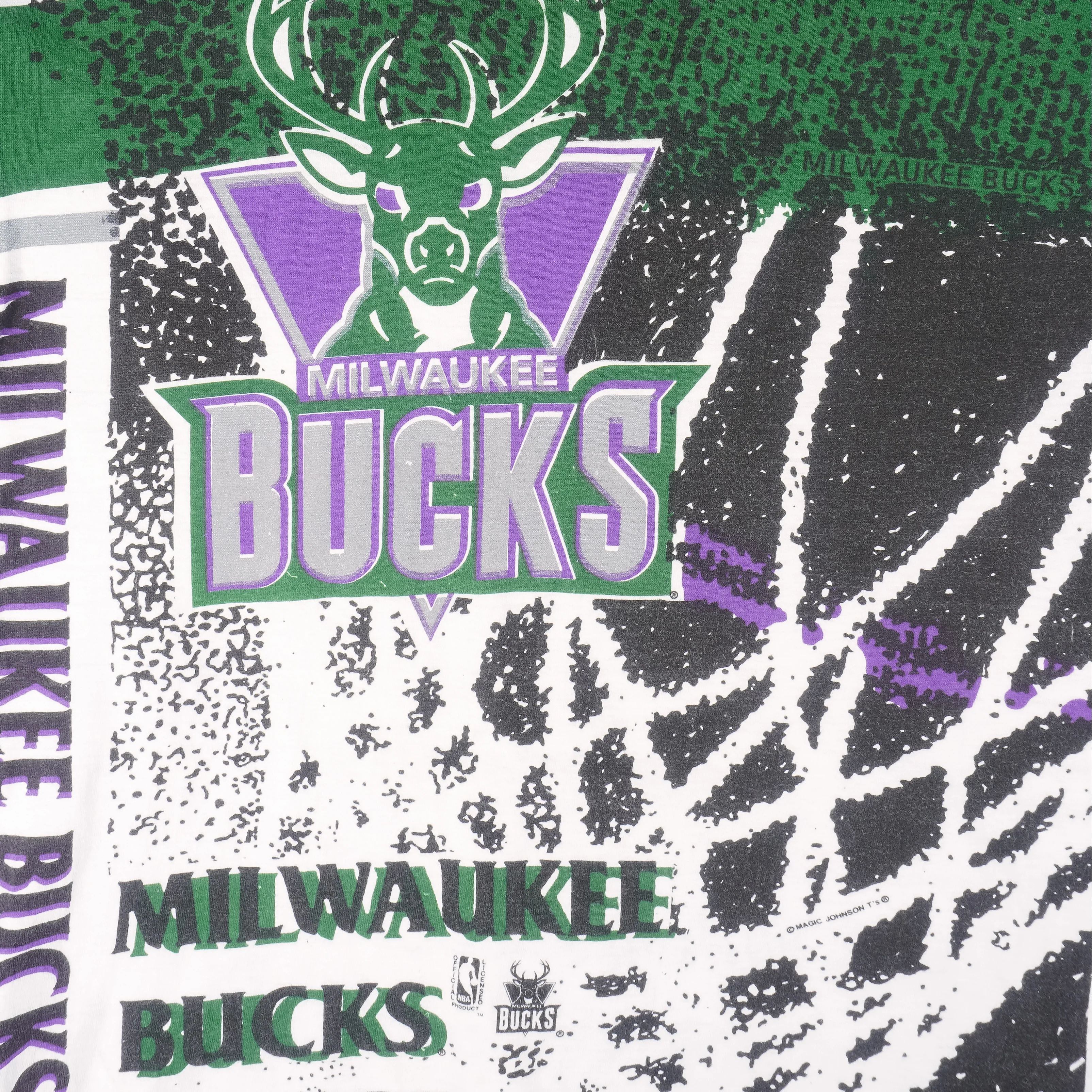 NBA (Magic Johnson T's) - Milwaukee Bucks All Over Print T-Shirt 1990s Small
