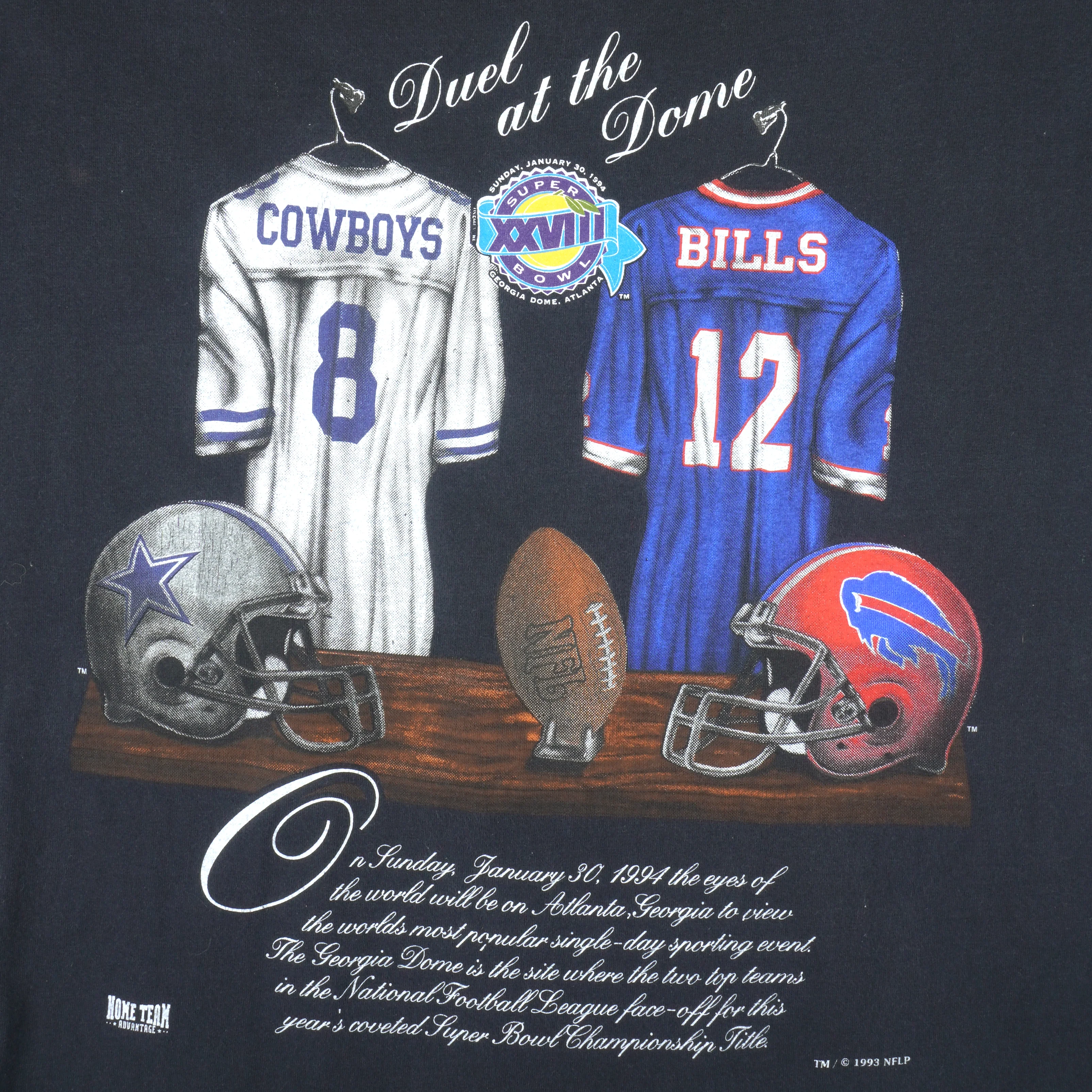1993 Vintage NFL Bills VS Cowboys Super Bowl 28th T-Shirt by Home Team. Black in color, big spell-out & logo, fits X-large size and is in excellent condition.