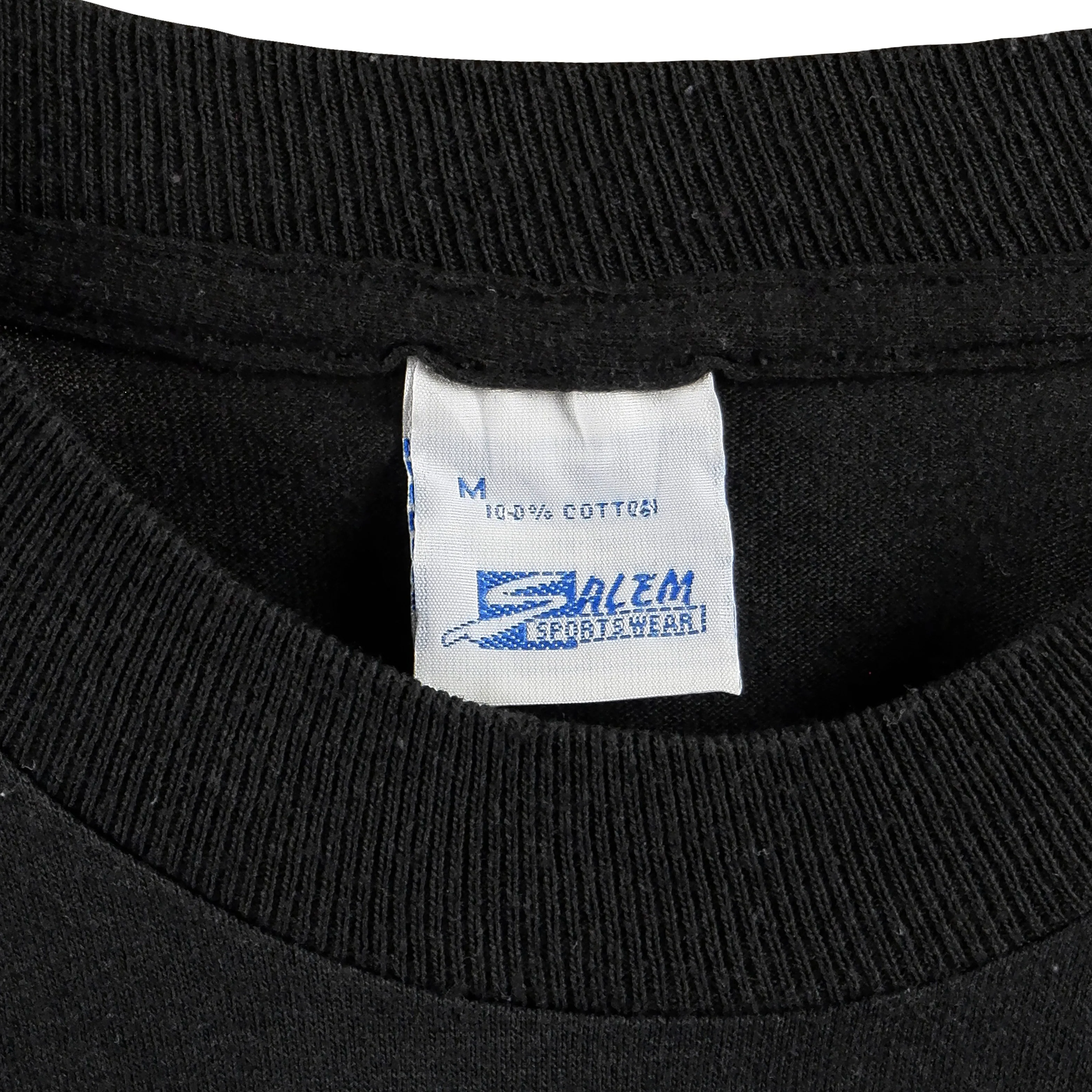1990s Vintage NFL San Francisco 49ers T-Shirt by Salem. Black in color with big logo on the front. Fits a medium tall size and is in excellent condition.