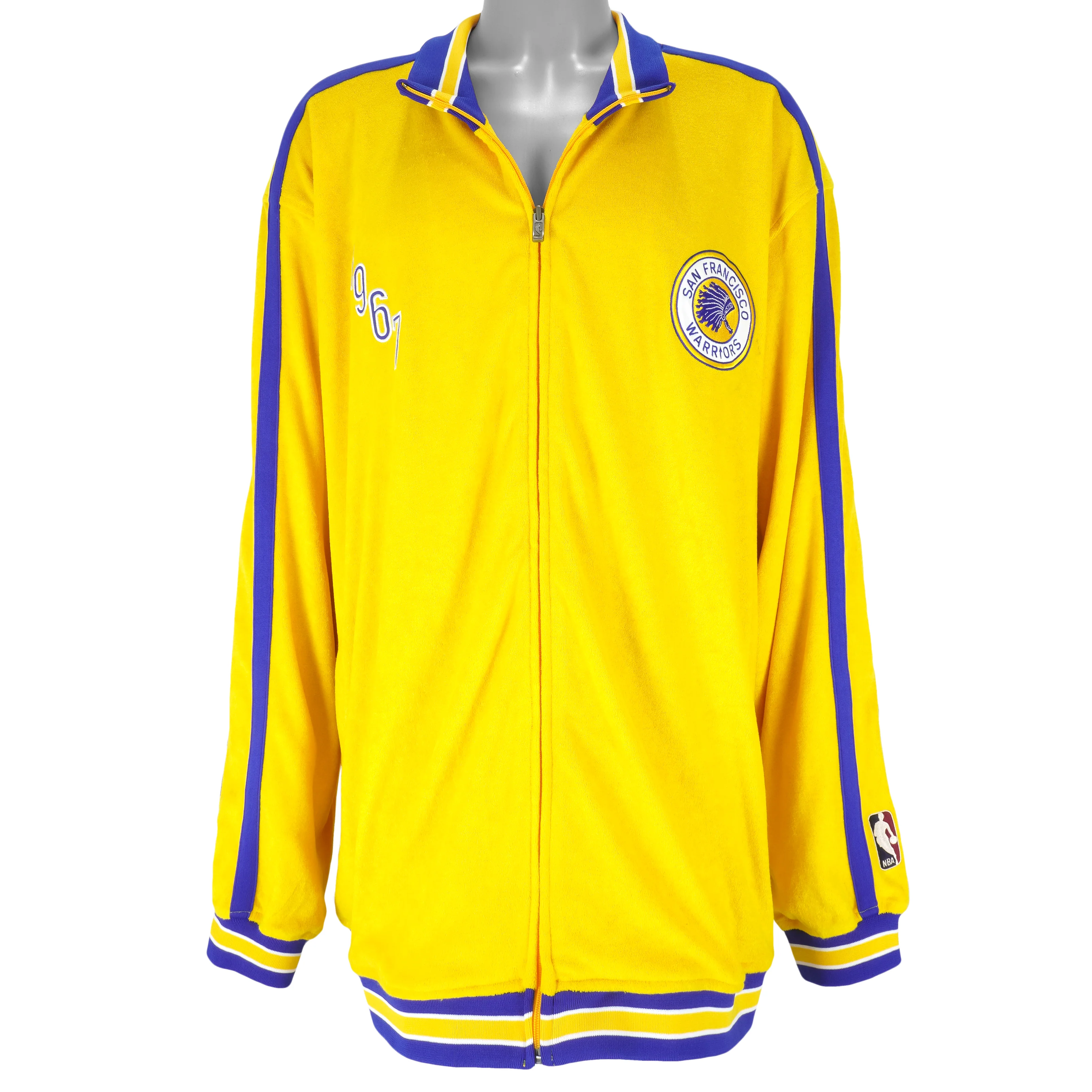2000s Vintage Reebok NBA Golden State Warriors 1967 Track Jacket X Hardwood Classics. Yellow in color with big logo & spell-out. Fits 3X-large size and is in excellent condition.
