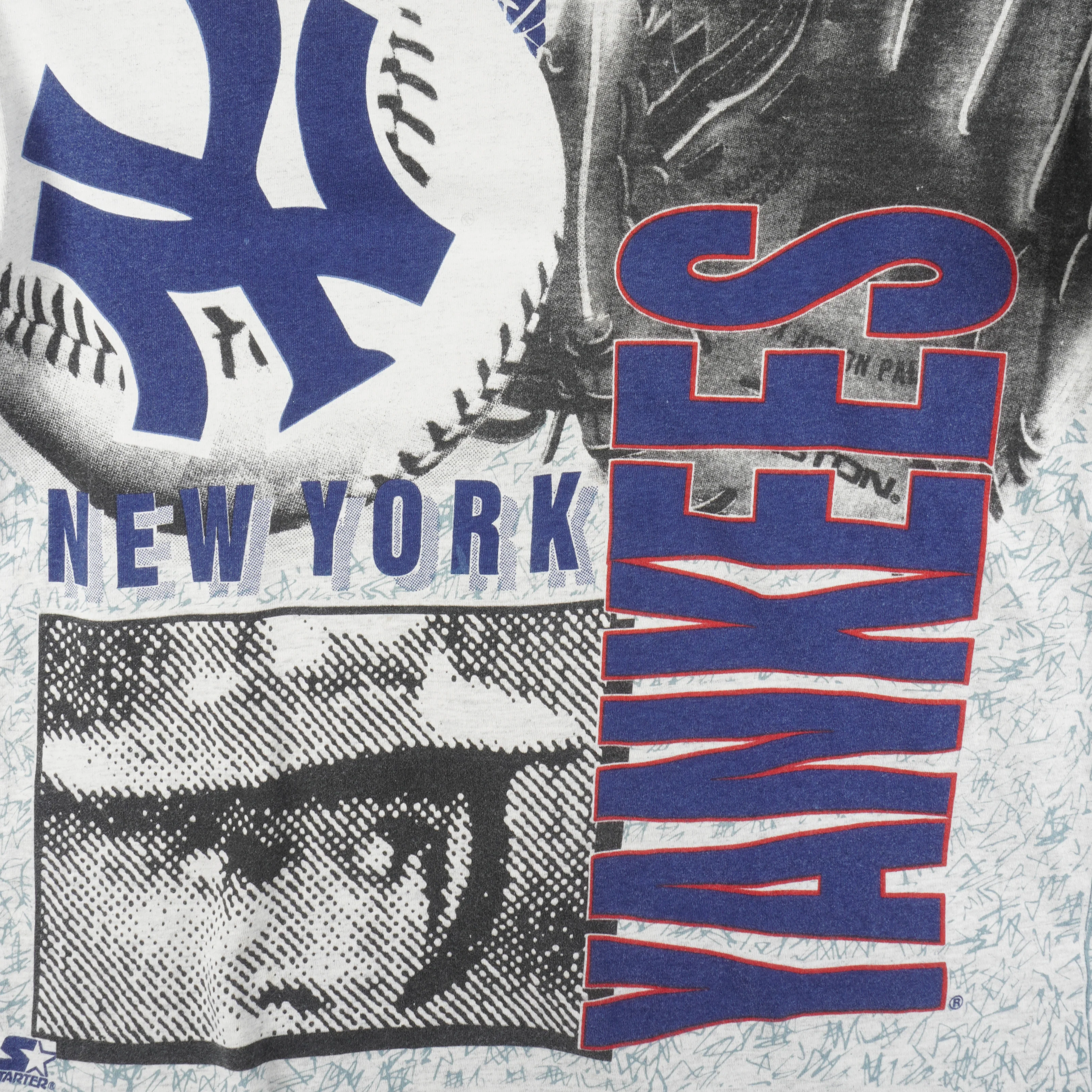 Starter - New York Yankees All Over Print T-Shirt 1990s Large