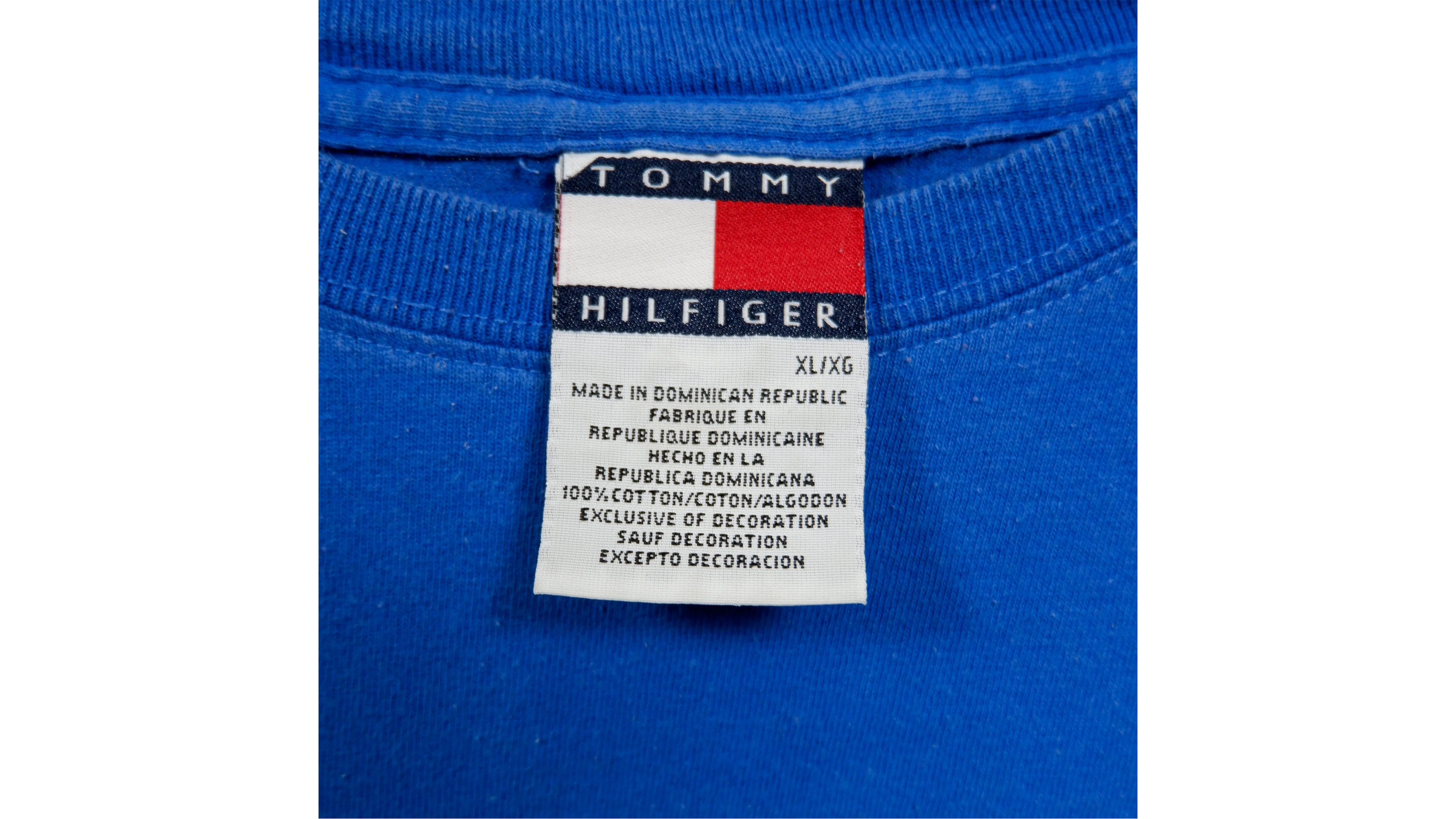 Vintage Tommy Hilfiger Spell-Out T-Shirt. Blue in color, full cross chest spell-out, fits X-large size and is excellent condition.
