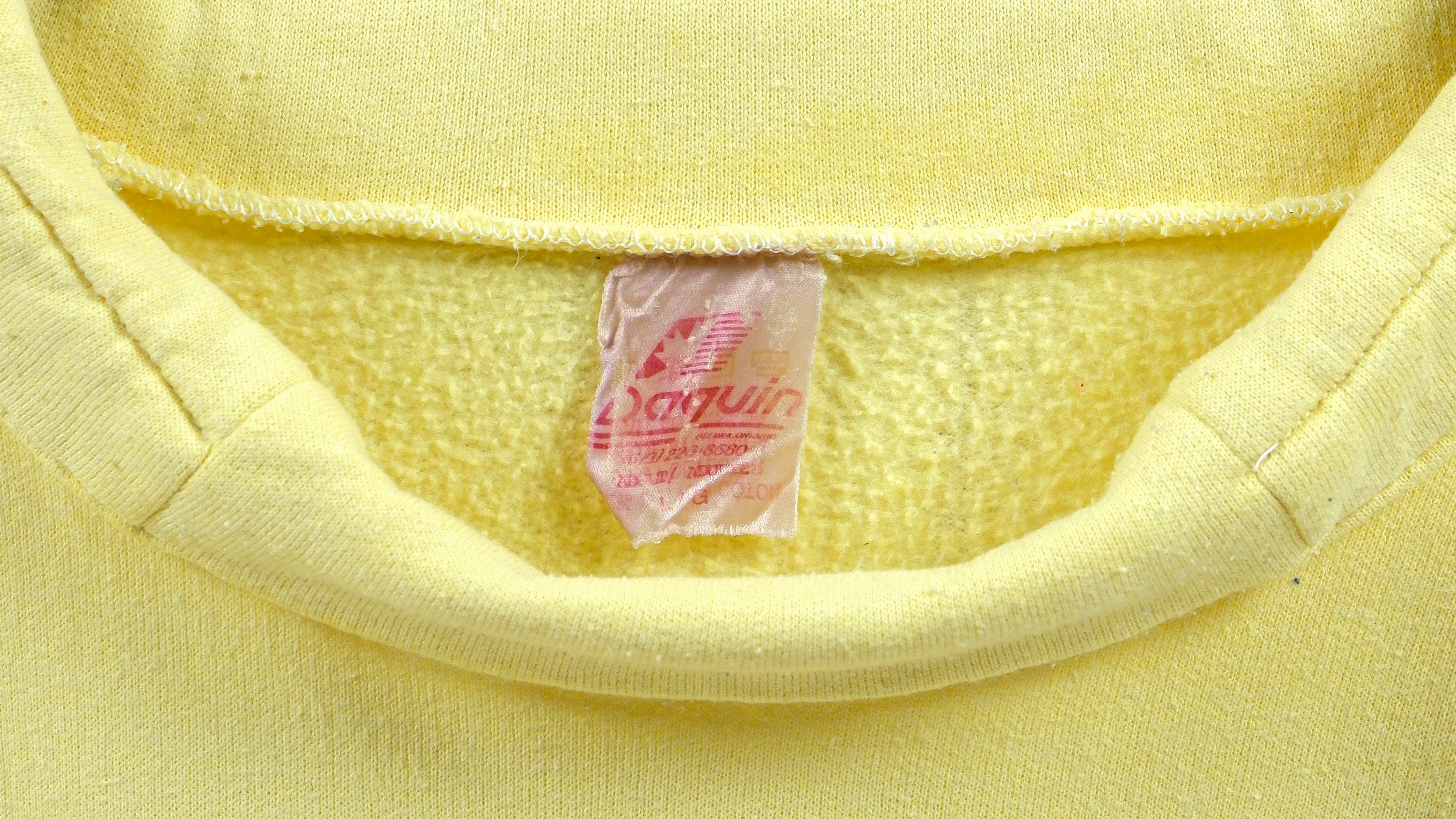 1990s Vintage Wildlife - Wolves Ours To Protect High Neck Sweatshirt by Daquin. Yellow in color, fits a large size with signs of wear, minor marks on the front and is otherwise in very good vintage condition.
