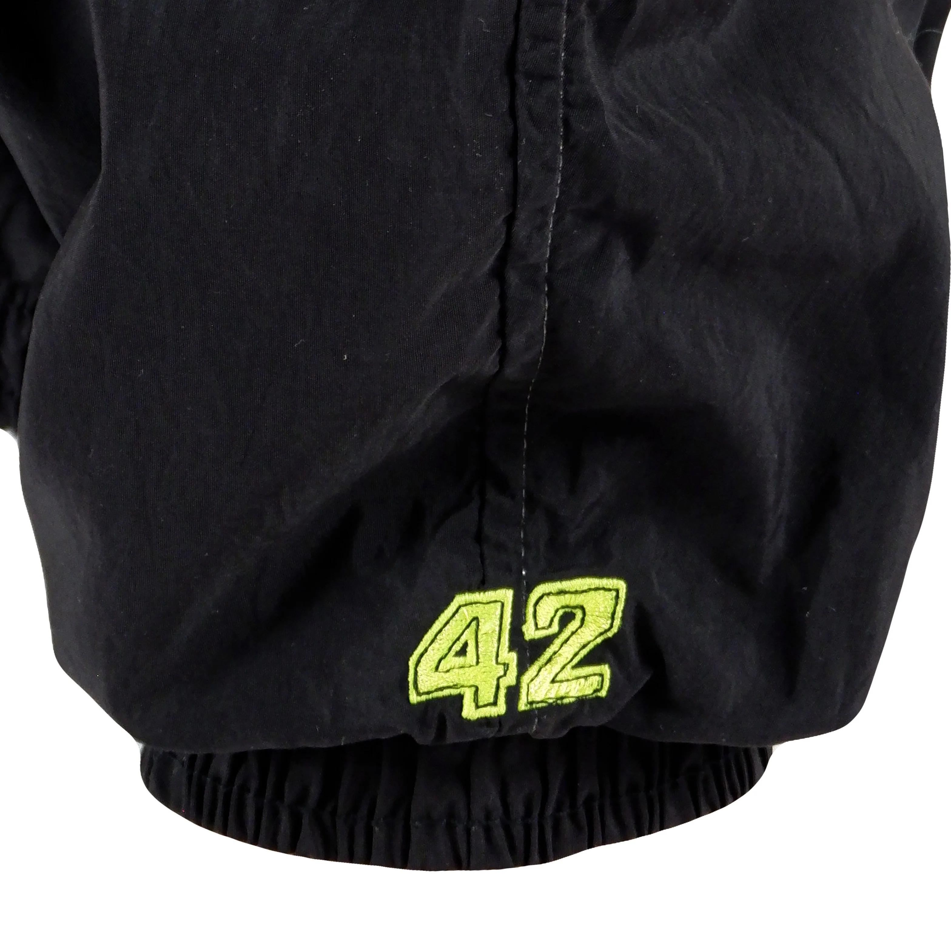 1990s Vintage Mellow Yello Racing Kyle Petty 42 Embroidered Spell-Out Jacket by Motorsports. Black, orange and yellow in color. Fits X-large size and is in excellent condition.