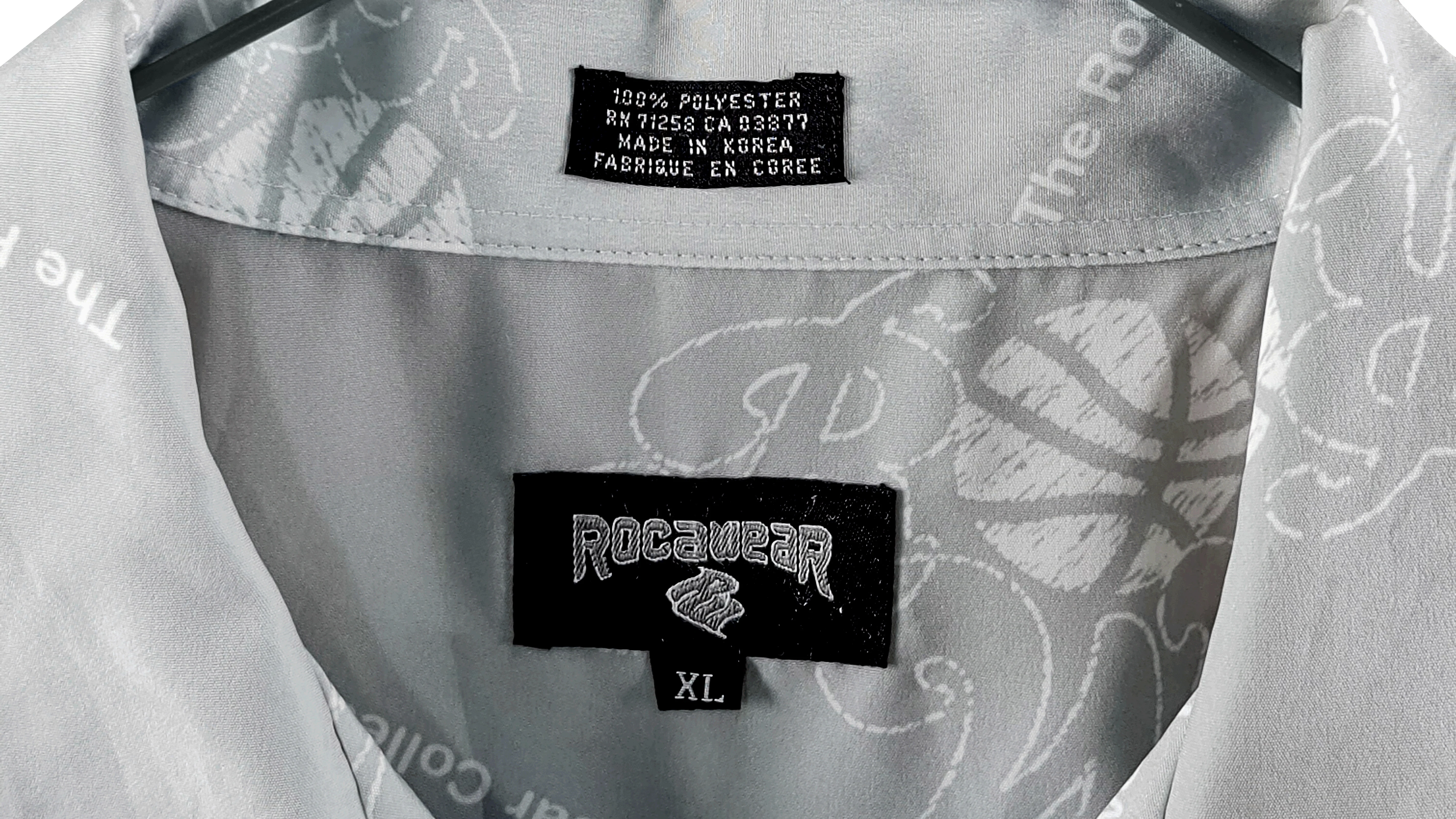 Vintage (Rocawear) - Light Grey Printed Button-Up T-Shirt X-Large